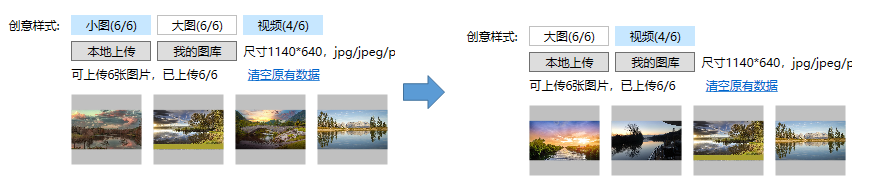 舉例如下:從網站鏈接-好看視頻單元(支持小圖)復制創意到應用下載-好看視頻單元(不支持小圖),復制后系統將自動過濾小圖樣式。