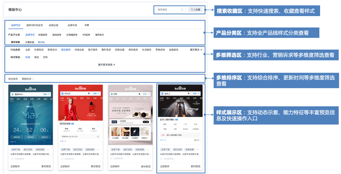 2.2、產(chǎn)品分類區(qū):支持品牌廣告各產(chǎn)品線切換分類查看對(duì)應(yīng)樣式模板