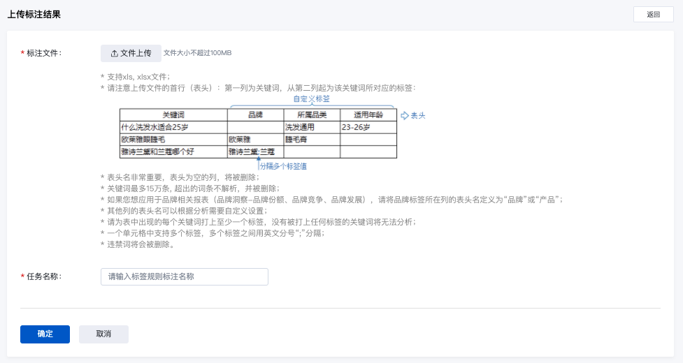 - 上傳標注結果,離線完成對關鍵詞的標簽標注,以Excel形式上傳