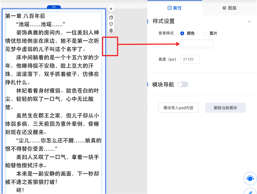 (4)如需修改頁面底色,點擊文本組件外部的區域,進入到空白組件,在右側屬性區【背景樣式】處修改顏色即可。