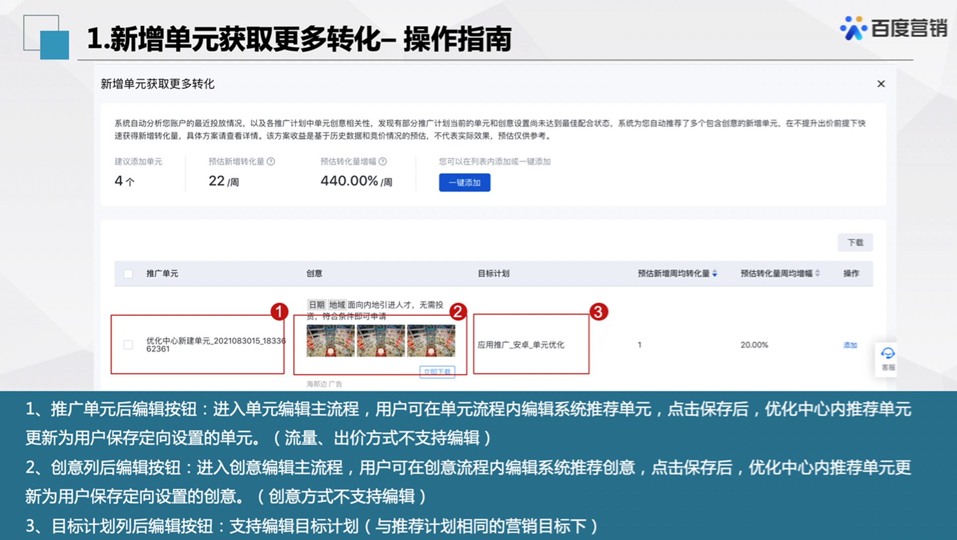 2、新增單元獲取更多轉(zhuǎn)化– 操作指南: