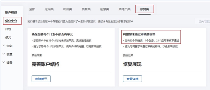 搜索推廣-“優(yōu)化中心-調(diào)整審核不通過的物料”建議升級