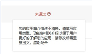 點(diǎn)擊【未通過】問號,查看了解審核不通過的具體原因(如下圖所示):