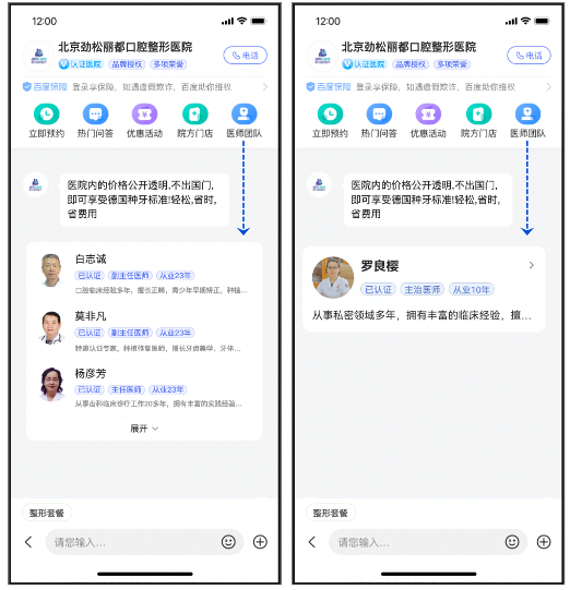 -如同時獲取到多條內容,則展示醫師列表卡,初始展示3條,『展開』更多后可查看最多10條醫師信息
