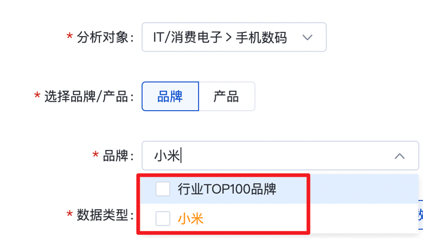 場景一:需要進行提案結案或指定品牌分析場景可以手動選擇輸入本品、競品進行分析
