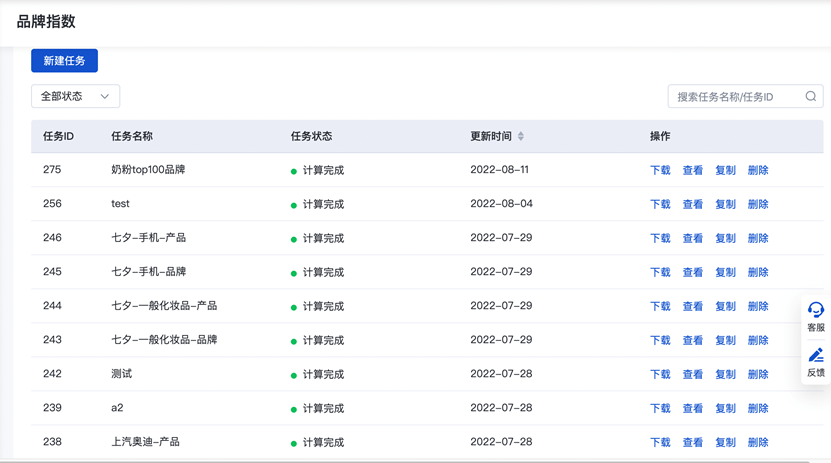 c)復制:復制任務,自動打開品牌指數創建頁,并帶入被復制任務的內容,支持編輯
