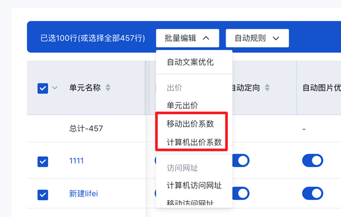 2.3批量編輯中,下線批量修改設(shè)備出價(jià)系數(shù)功能: