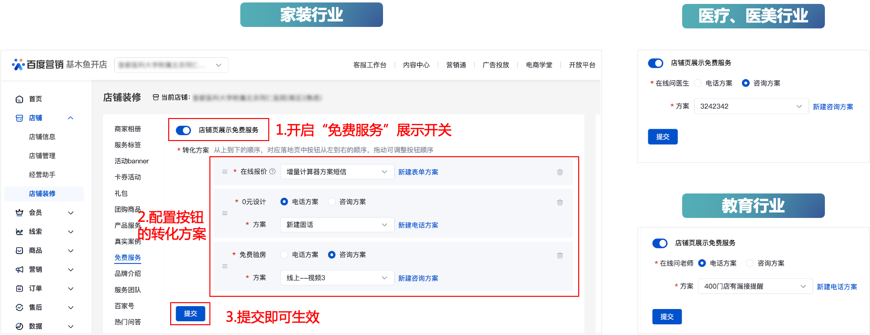 1、新增免費服務模塊 增加更多轉化入口——適用于家裝、教育、醫療、醫美行業