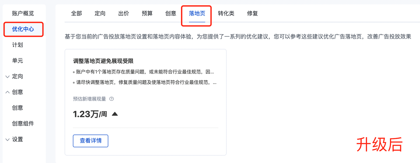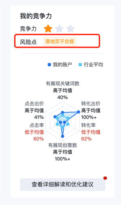 ■ 升級點二:賬戶競爭力洞察,【我的競爭力】新增“落地頁不合規(guī)”風險點預警
