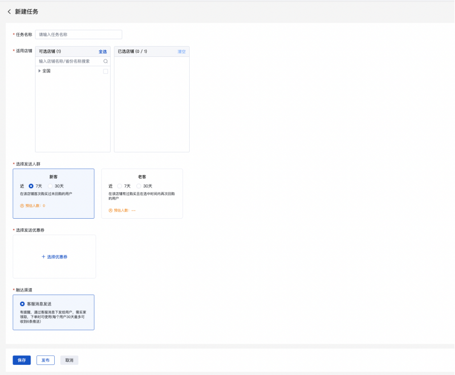 預(yù)估人數(shù)僅僅是基于當(dāng)前店鋪的客群預(yù)估的可發(fā)放人數(shù),并不是本次任務(wù)真實(shí)要觸達(dá)的人數(shù)
