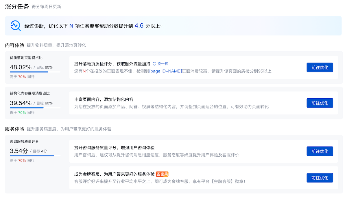 - 內容體驗:考評投放落地頁內容質量及內容豐富度