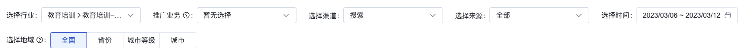 b)選擇:行業(yè)、推廣業(yè)務(wù)、渠道、來源、時(shí)間范圍、地域