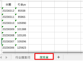 sheet2-搜索量:表格形式呈現(xiàn)所選日期分日搜索量,便于分析及后續(xù)數(shù)據(jù)加工應(yīng)用