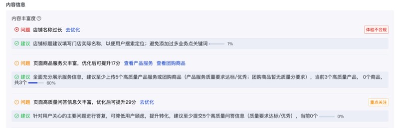 - 店鋪名稱檢測:店鋪名稱存在營銷性問題或長度不在合理區間內,含此類問題時質檢評級直接定為不合格