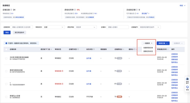 - 教育或家裝類目店鋪,在店鋪-店鋪管理,展示【一鍵搬家】按鈕