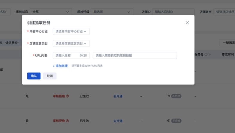 - 支持通過輸入其他平臺自有店鋪首頁PC鏈接進行物料抓取