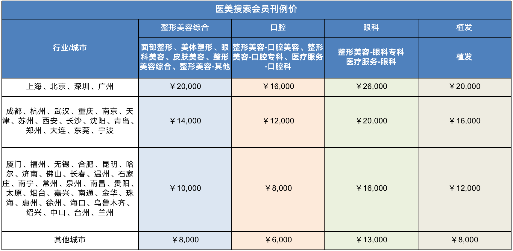 整形美容行業客戶支持購買本地店鋪會員(下文簡稱為醫美搜索會員),為購買了會員的客戶提供本地搜索流量。當用戶在百度APP搜索醫美相關關鍵詞時將有機會展現客戶阿拉丁卡片,向用戶推薦客戶產品。覆蓋整形美容全行業,包括口腔、眼科、整形美容綜合、植發。