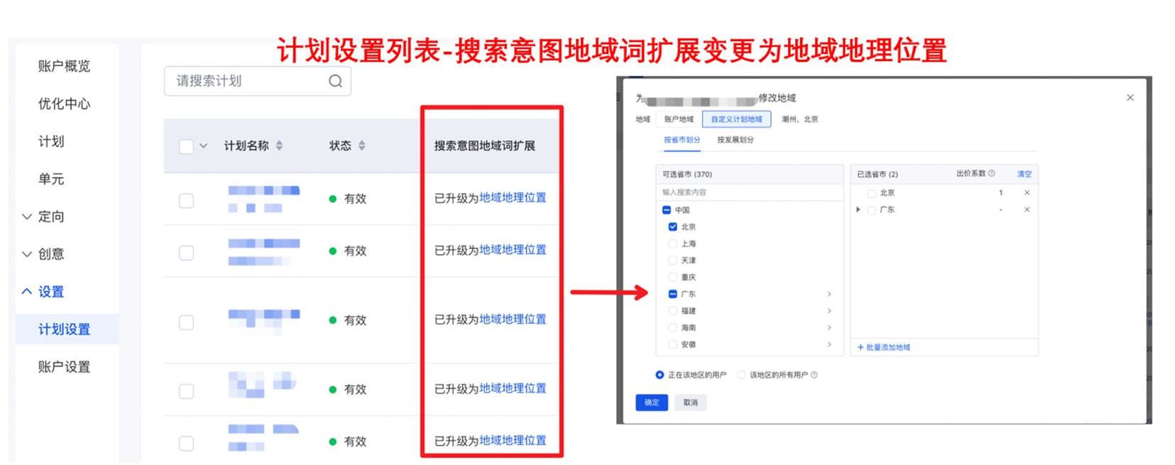 搜索推廣計劃地域設置升級提供精細設置選項——小流量上線