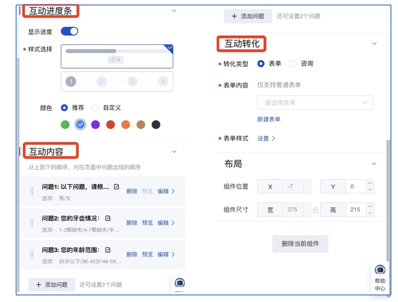 通過互動型落地頁,醫美消費者可先進行點選和對話互動選擇相關信息進行"輕咨詢"后,在基木魚表單或者咨詢中留下相關線索信息。互動頁面相較于傳統表單頁面有以下優勢: