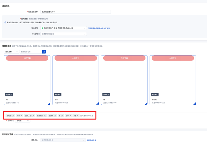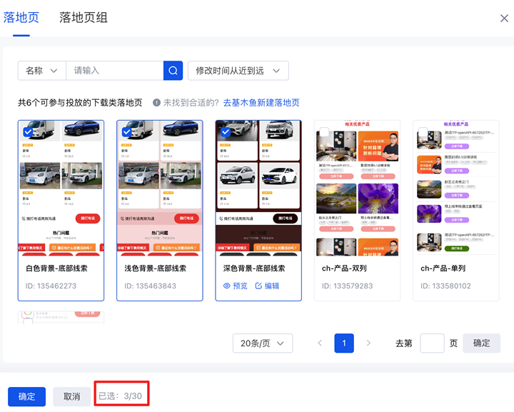 - 在搜索廣告平臺勾選的營銷頁會展示在「營銷頁選擇」模塊內(nèi),并支持新增選取或刪減
