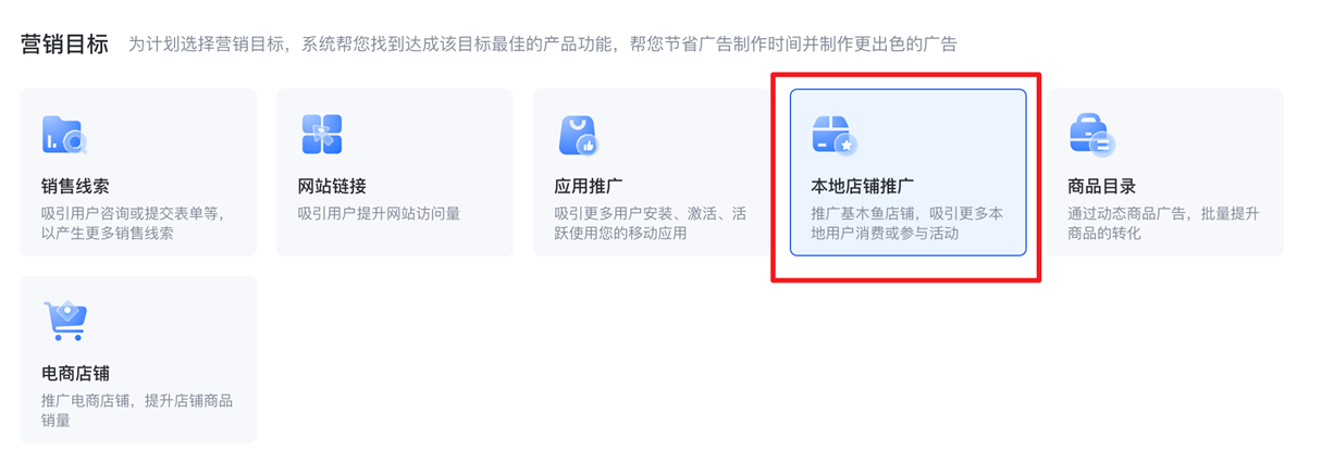 - "本地推廣"營銷目標重塑升級為"本地店鋪推廣",基于推店鋪/推商品兩個維度,為本地行業客戶提供更契合實際業務模式的投放鏈路。