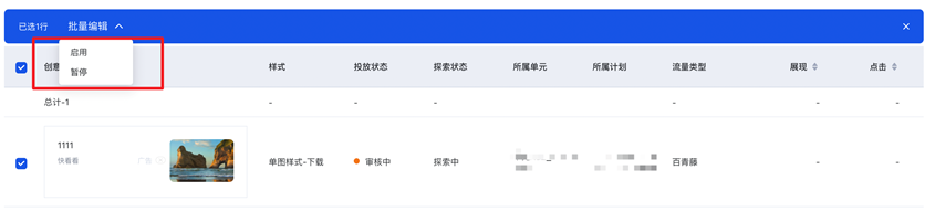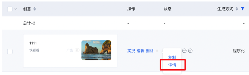 除報告外,也可在創意列表頁,查看組合數據,進行編輯操作: