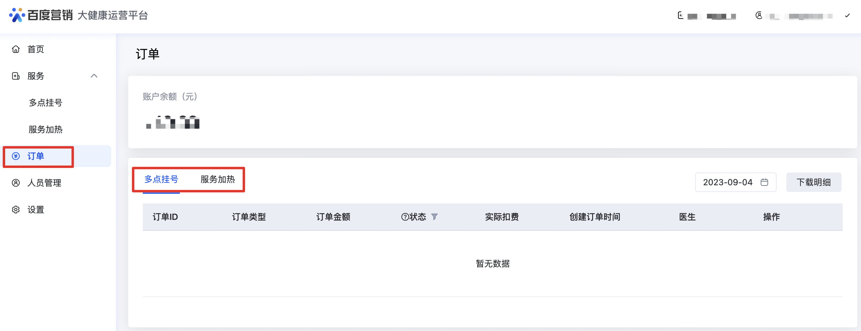 在“訂單”查看多點掛號及服務加熱的掛號訂單明細;