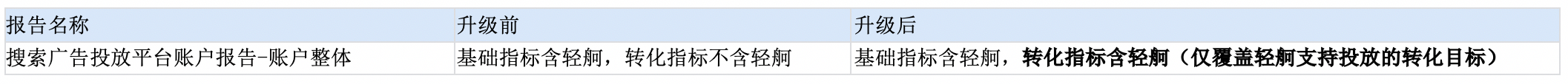搜索賬戶整體數據報告中轉化指標數據統計范圍增加輕舸-全流量上線