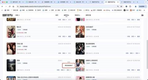 若無『點擊綁定投放賬戶』選項,通常是短劇合集或視頻單集審核未通過,建議自行check①短劇合集狀態;②第一集子視頻審核狀態;③視頻封面有人物截斷、模糊等質量問題被拒。如有審核問題可以在相關百家號短劇審核群溝通處理。如流問題溝通群:9235418