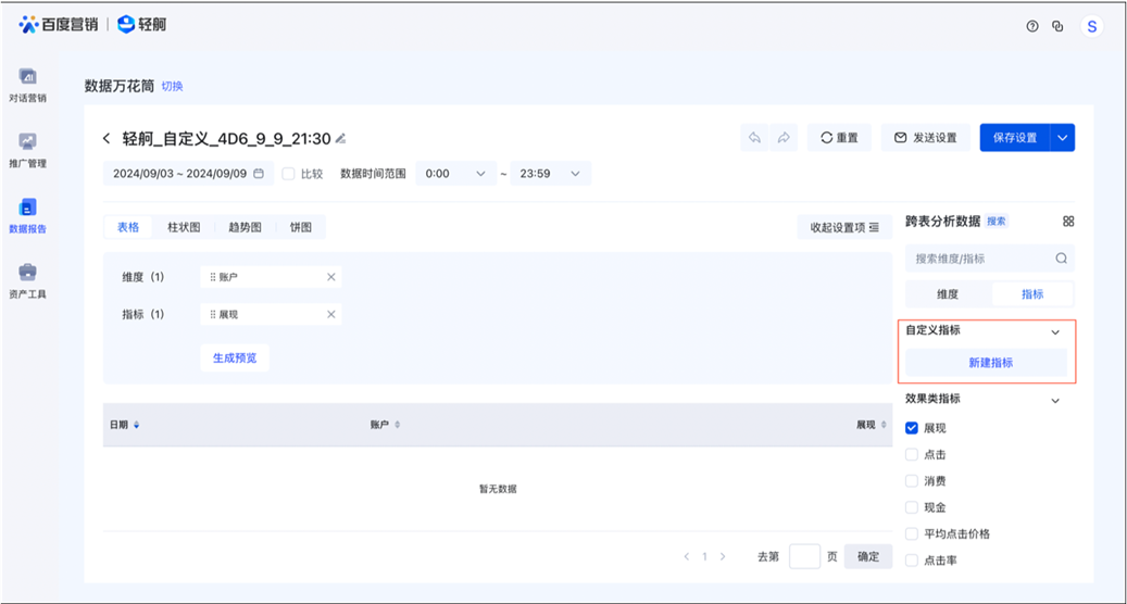 注意:自定指標入口必須在您保存報告的基礎上可以生成。