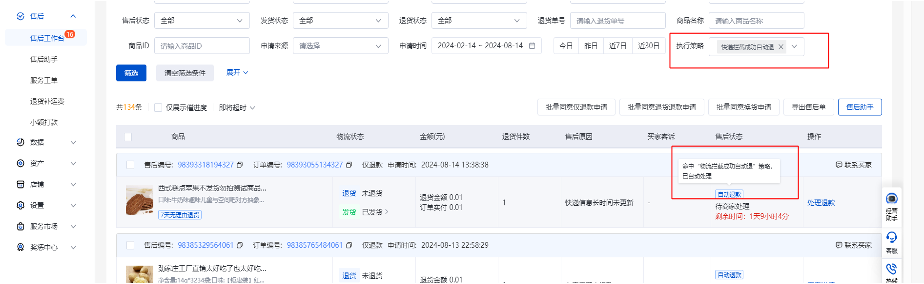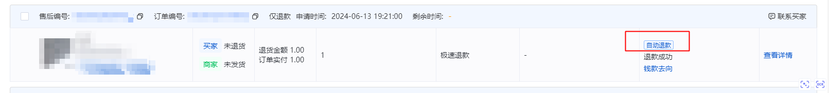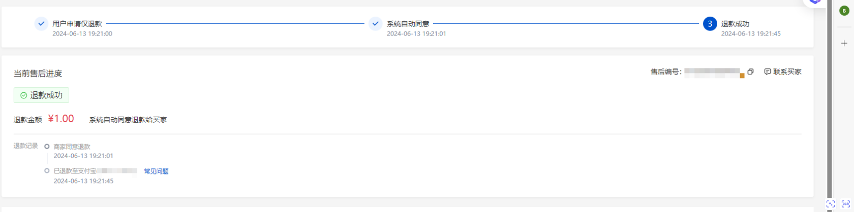 攔截退款成功后售后訂單頁面會顯示自動退款;