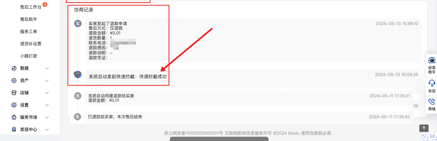 如何確定是否是快遞攔截的退款訂單,可以查看協商記錄來確定。
