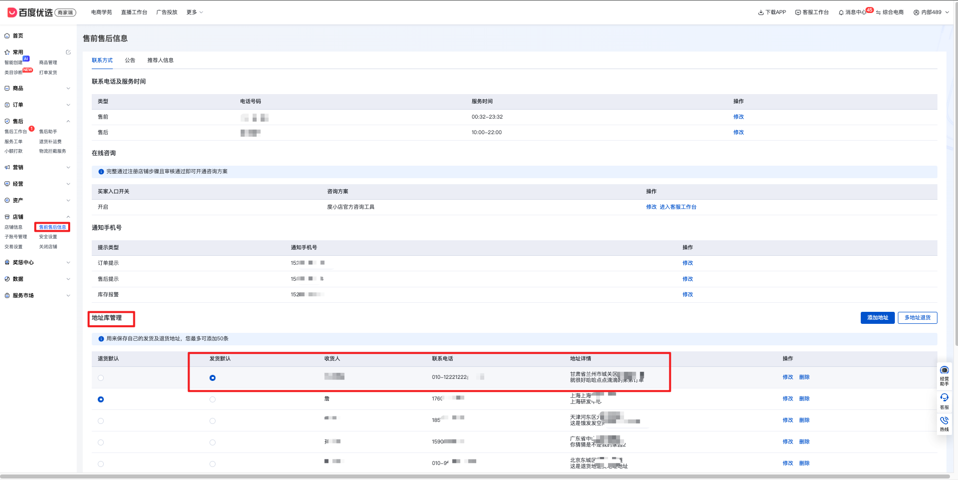 商家通過設置地址庫,來設置自己的發貨地址和收貨地址。
