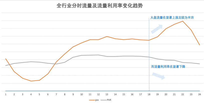 撞線賬戶是指因賬戶設(shè)置的預(yù)算不足導(dǎo)致廣告下線且下線后當(dāng)天0消費(fèi)。從24小時(shí)分時(shí)撞線數(shù)據(jù)上看,下午17點(diǎn)開始賬戶撞線率增幅達(dá)到頂峰,并持續(xù)有大量的撞線賬戶增加導(dǎo)致廣告下線,從大盤流量走勢來看晚上18:00-22:00流量在迅猛上漲,但此黃金時(shí)段的流量利用率卻在顯著下降。可以判斷出有很多流量因預(yù)算設(shè)置等原因卻未被客戶充分利用。因此,關(guān)注預(yù)算撞線問題,避免賬戶在黃金時(shí)段撞線或延長投放時(shí)間,可幫助優(yōu)化師和客戶充分獲取更多優(yōu)質(zhì)流量提升營銷效能。