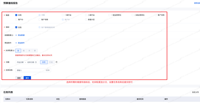 2.獲取到賬戶粒度的BY天最晚撞線時(shí)間:預(yù)算撞線-自助查詢