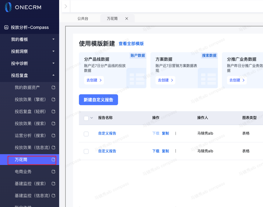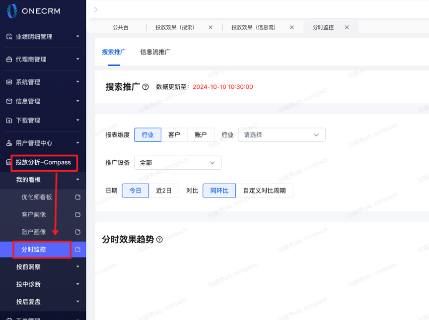 操作路徑:CRM賬戶登錄onecrm—>投放分析-compass—>我的看板—>分時(shí)監(jiān)控—>分時(shí)監(jiān)控明細(xì)數(shù)據(jù)下載