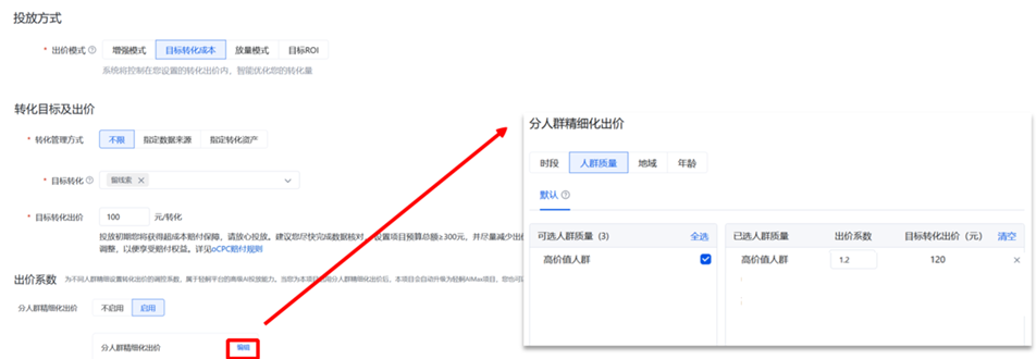 ①目標轉化成本-分人群精細化出價 檔位簡化