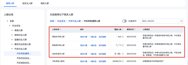 a)入口:人群集市->推薦人群->行業(yè)關(guān)注->汽車行業(yè)人群->汽車特色通用人群