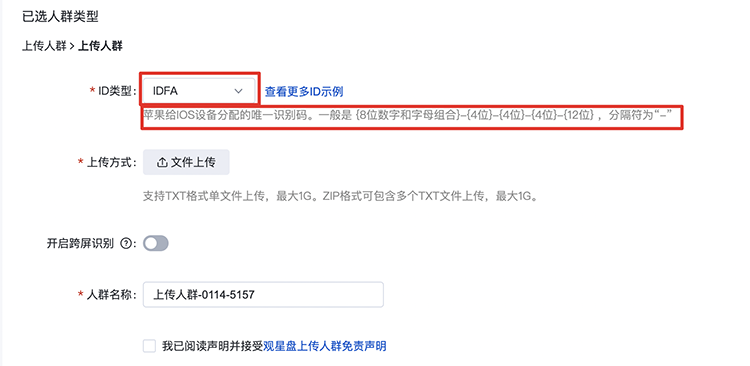 ü 上傳人群支持將多個TXT文件(需同類ID)合并壓縮成ZIP后直接上傳,支持1G的ZIP文件