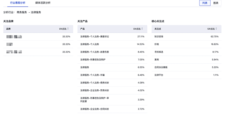 4、品牌數(shù)據(jù)資產(chǎn)-全鏈用戶追蹤:營銷鏈路分層人群的意圖分析擴(kuò)展家具家居、招商加盟、學(xué)歷教育、法律服務(wù)4個行業(yè)。