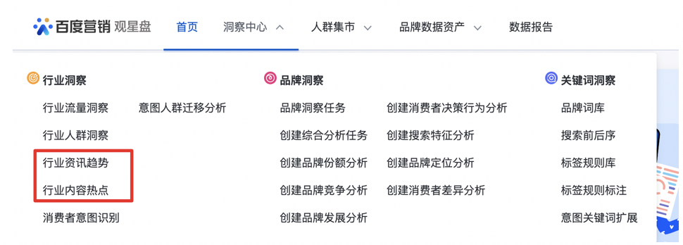 a)入口:洞察中心-行業(yè)洞察-行業(yè)資訊趨勢(shì) & 洞察中心-行業(yè)洞察-行業(yè)內(nèi)容熱點(diǎn)