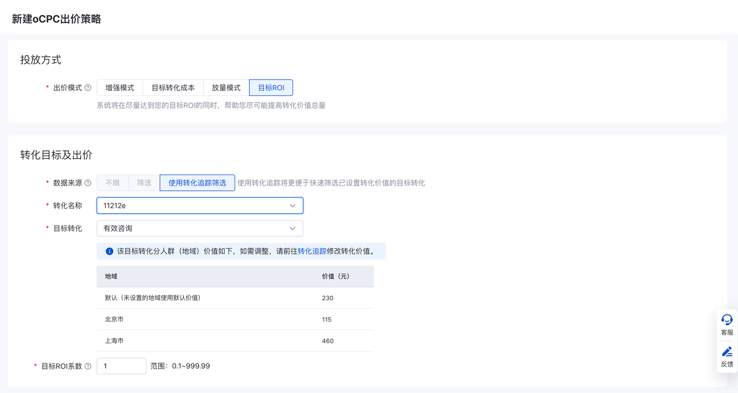 oCPC出價策略新增目標ROI模式支持分地域差異轉(zhuǎn)化價值優(yōu)化———小流量上線