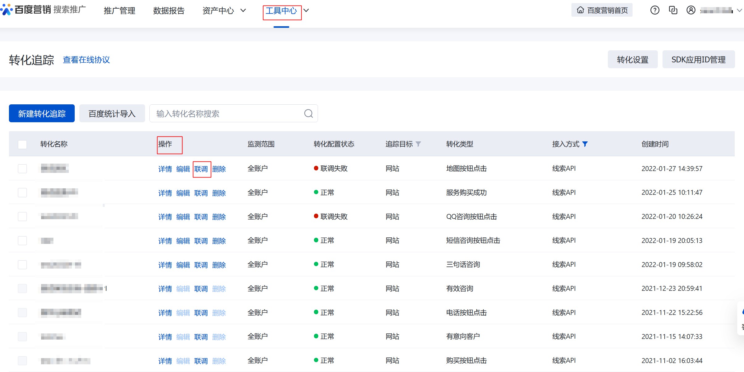 搜索推廣轉化追蹤-線索API聯調升級--全流量上線