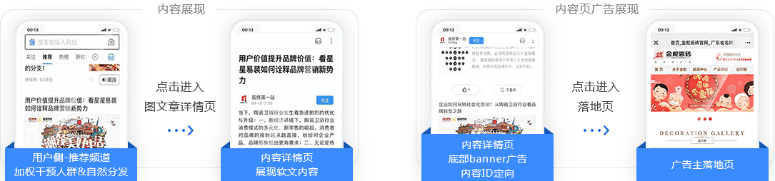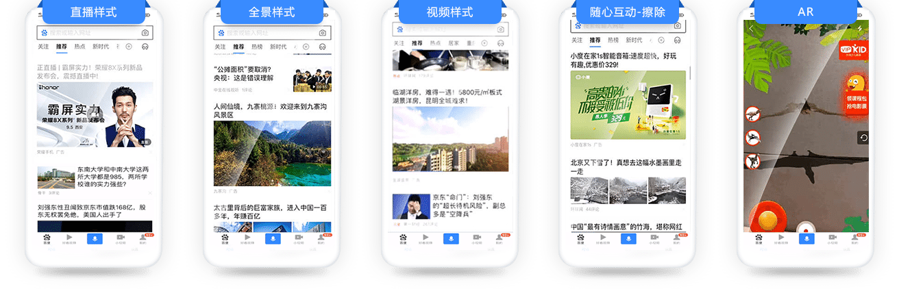 展現(xiàn)位置:百度APP\WAP:推薦頻道第一、二廣告位、圖文詳情頁、視頻詳情頁后貼、視頻列表頁、小視頻詳情頁;好看:視頻列表頁;貼吧;列表頁/內(nèi)容頁。