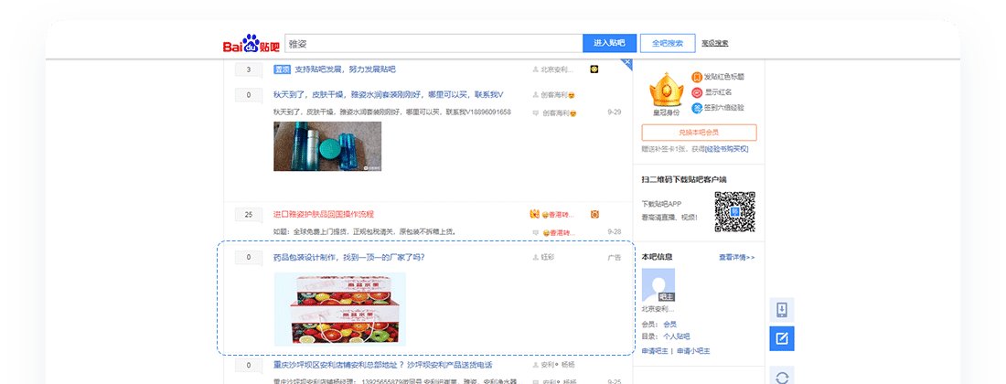 ●百度貼吧日產(chǎn)生話題1億+